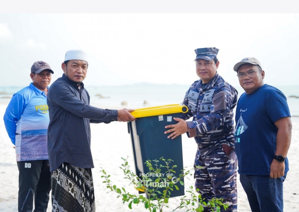 Cakrawalanational.news-Sungailiat, Untuk mendukung keasrian dan pelestarian lingkungan di kawasan Wisata Pantai Batu Tunggal, Kabupaten Bangka, Kepulauan Bangka Belitung (KBB) PT Timah menyerahkan bantuan alat kebersihan untuk Kelompok Sadar Wisata (Pokdarwis) Lingkungan Rambak.