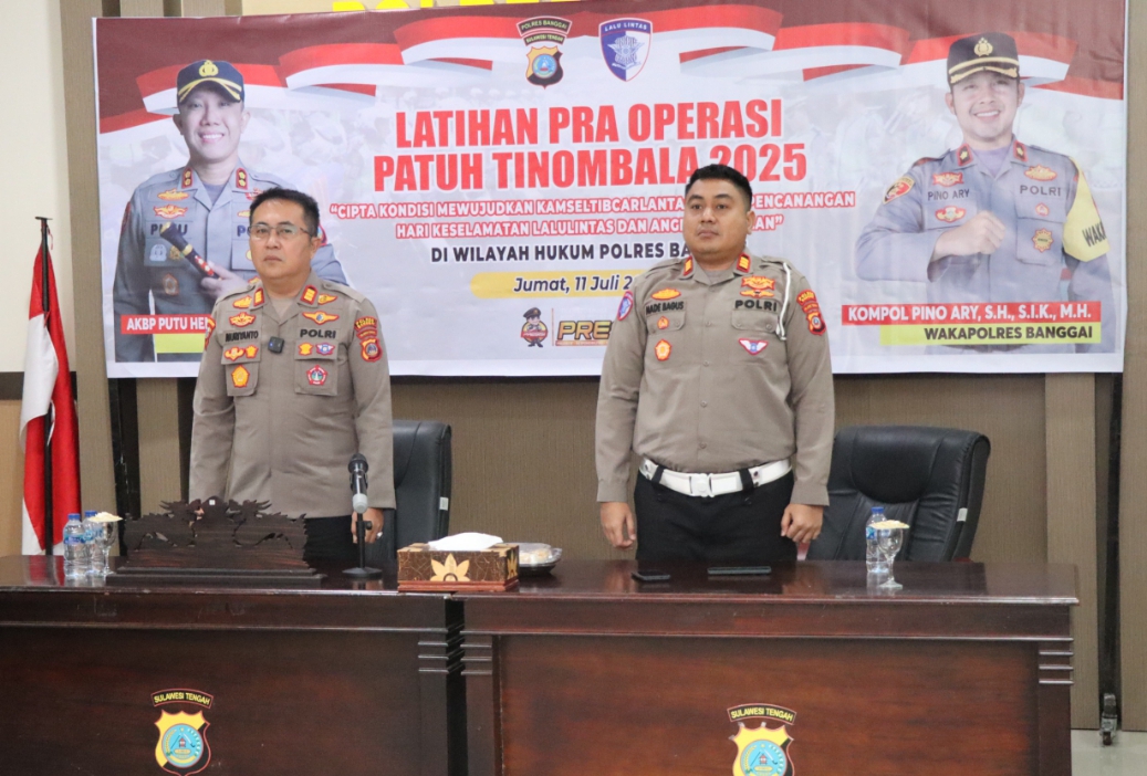 Cakrawalanational.news-Luwuk, Polres Banggai menggelar Latihan Pra Operasi (Latpraops) Patuh Tinombala 2025 di Gedung Rupatama Polres Banggai, Jumat (11/7) pagi.