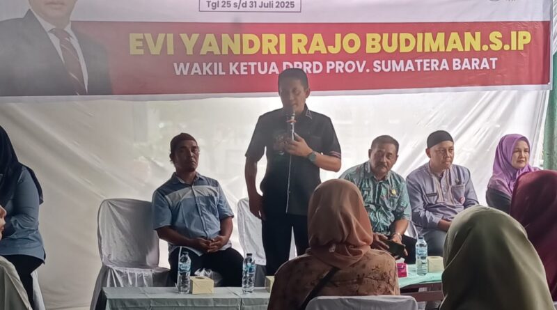Cakrawalanational.news-Padang, Wakil Ketua DPRD Provinsi Sumbar Evi Yandri Rajo Budiman menggelar reses di RT 02 RW 01 Kelurahan Padang Besi Kecamatan Lubuk Kilangan Kota Padang, pada Jumat (25/7/2025).