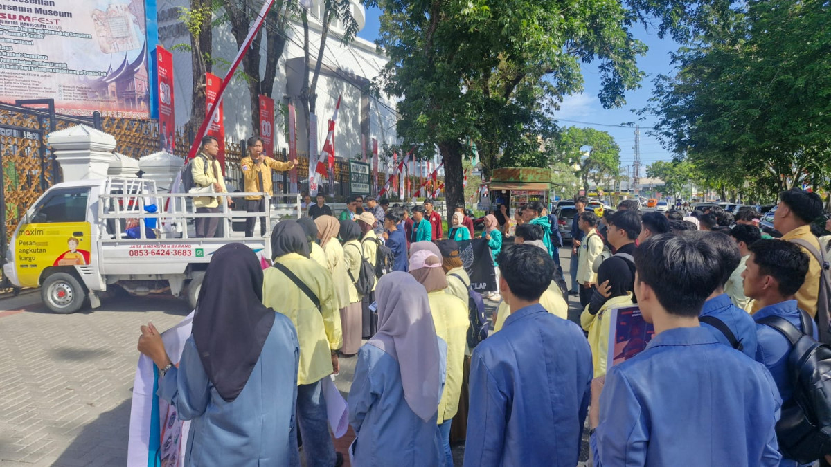 Cakrawalanational.news-Padang, Puluhan mahasiswa yang tergabung dalam Badan Eksekutif Mahasiswa (BEM) se-Sumatera Barat (Sumbar) mendatangi Gedung DPRD Sumbar, Senin (4/8/2025). Mereka membawa 12 poin tuntutan yang mencakup isu hukum, lingkungan, hingga kesejahteraan rakyat.