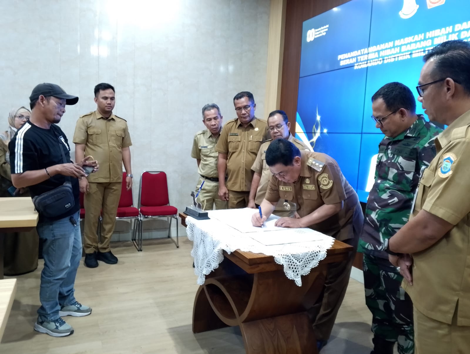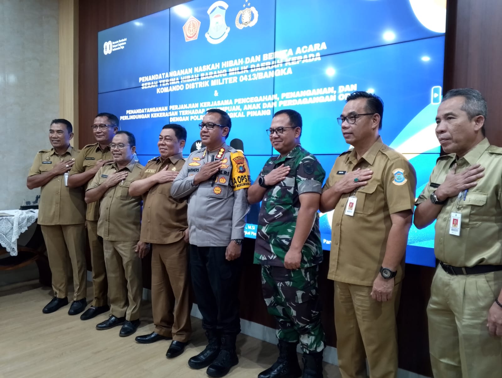 Cakrawalanational.news-Pangkalpinang, Pemerintah Kota (Pemkot) Pangkalpinang, bersama dengan Kepolisian Resort Kota (Polresta) Pangkalpinang dan Kodim 0413 Bangka, melakukan penandatanganan naskah hibah dan berita acara serah terima hibah Barang Milik Daerah.