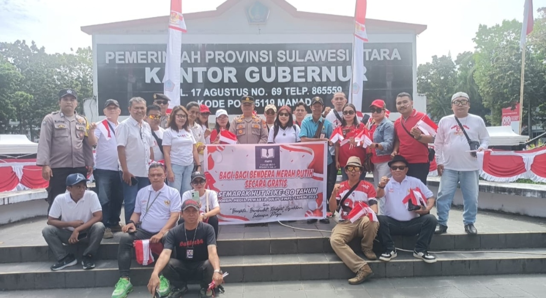 Cakrawalanational.news-Sulut, Semangat kemerdekaan Indonesia berkobar pagi ini di sepanjang Jalan 17 Agustus, Manado. Forum Media Pewarta Sulut (FMPS) menjadi penggerak utama dengan membagikan bendera Merah Putih secara gratis kepada masyarakat, menandai dimulainya rangkaian peringatan Hari Ulang Tahun ke-80 Republik Indonesia. Aktivitas sosial ini sukses menjadi magnet yang menarik perhatian pengendara, baik sepeda motor maupun mobil.