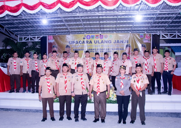 Cakrawalanational.news-Luwuk, Dalam rangka memperingati Hari Pramuka ke-64 Tahun 2025, Kwartir Cabang Gerakan Pramuka Kabupaten Banggai melaksanakan Upacara Ulang Janji di halaman Madrasah Aliyah Negeri (MAN) 1 Banggai, Rabu malam (13/08/2025).