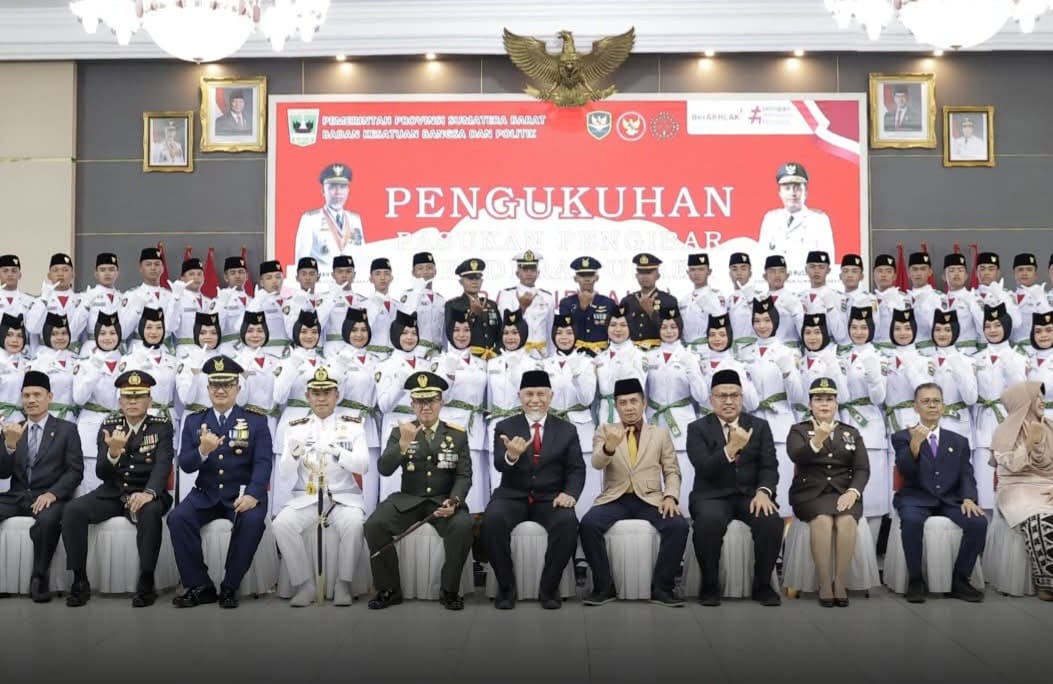 Upacara pengukuhan berlangsung khidmat dengan dihadiri Gubernur Sumbar, jajaran Forkopimda, serta orang tua dan keluarga anggota Paskibraka.