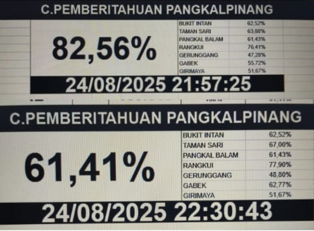 Cakrawalanational.news-Pangkalpinang, Menjelang H-3 pelaksanaan Pemilihan Kepala Daerah (Pilkada) Ulang Pangkalpinang 2025, publik digegerkan dengan adanya data berbeda mengenai progres distribusi Formulir C6 (surat pemberitahuan memilih) yang dikeluarkan oleh Komisi Pemilihan Umum (KPU) Kota Pangkalpinang, Minggu (24/8/2025) malam.