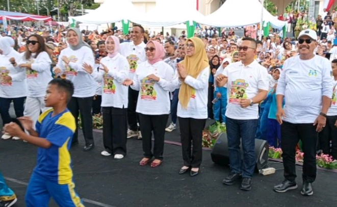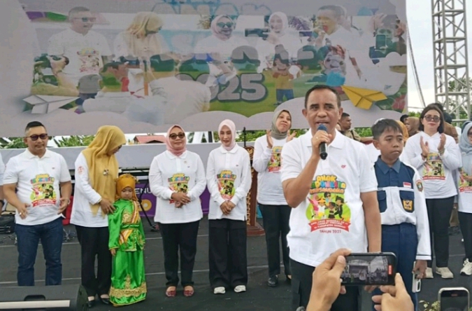 Cakrawalanational.news-Luwuk, Peringatkan Hari Anak Nasional ke-41 se-Sulawesi Tengah yang diselenggarakan di Kabupaten Banggai sebagai tuan rumah kegiatan, berlangsung dengan meriah, dan semakin meriah dengan kehadiran Menteri Pemberdayaan Perempuan dan Anak (PPPA) RI Dra. Hj. Arifatul Choiri Fauzi, M.Si dan Gubernur Sulteng Dr. H. Anwar Hafid, M.Si serta Bupati Banggai Ir. H. Amirudin, MM. AIFO pada puncak Peringatan Hari Anak Nasional (HAN) Se-Sulawesi Tengah, bertempat di Lapangan Mirqan Kompleks Kantor Bupati Banggai, Kelurahan Tombang Permai Kecamatan Luwuk Selatan, Senin (25-8-2025).