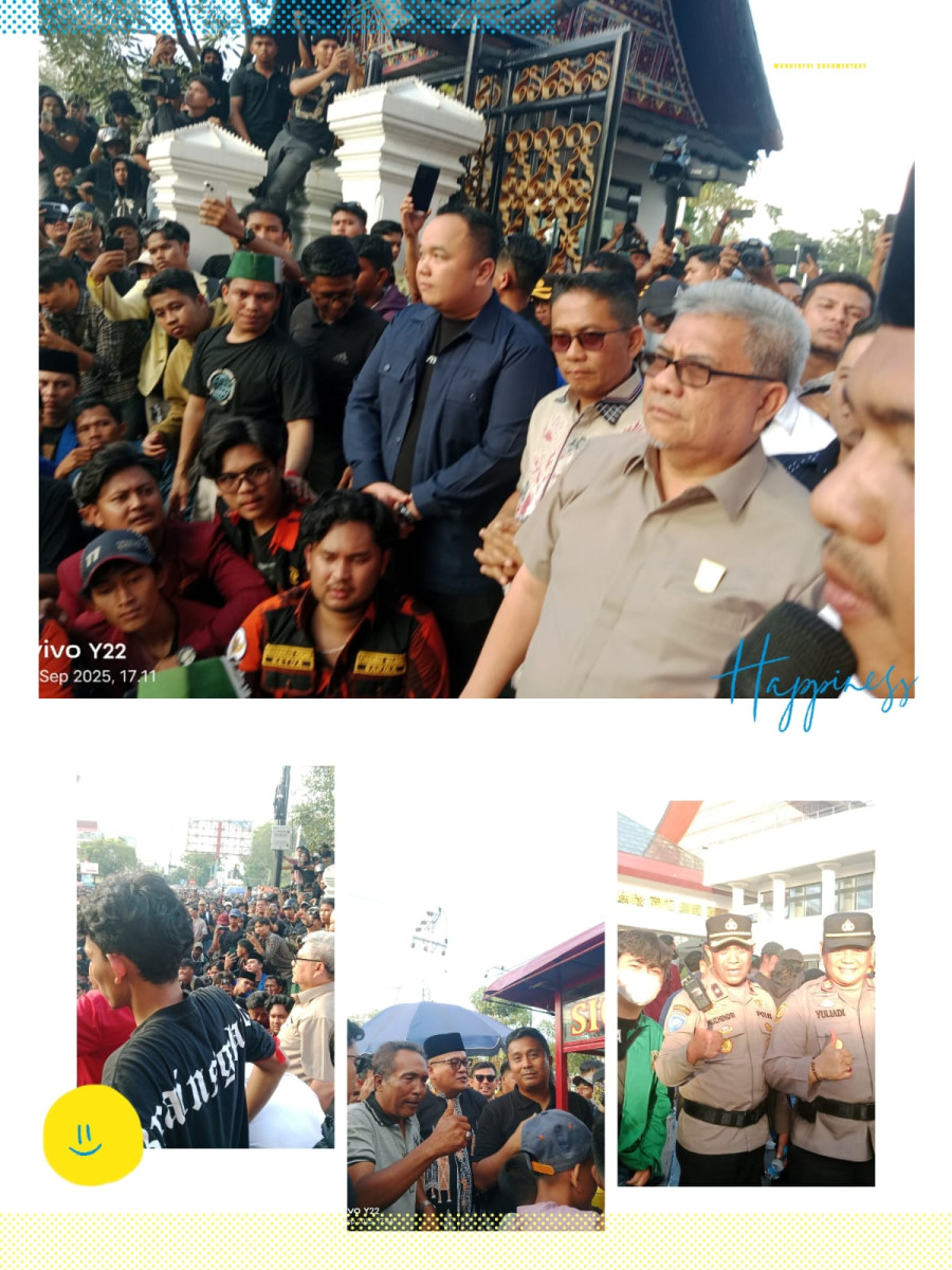 Ia mengapresiasi sikap damai para peserta aksi. “Saya bangga dan salut, tidak ada sedikitpun anarkis. Justru mahasiswa dan masyarakat menunjukkan ciri khas Ranah Minang yang menjunjung tinggi etika dan kebersamaan,” ungkapnya.