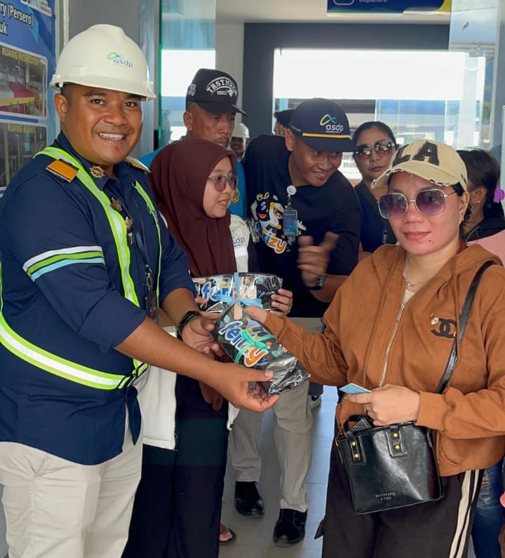 Cakrawalanational.news-Luwuk, Dalam rangka memperingati Hari Pelanggan Nasional (Harpelnas) yang jatuh pada setiap tanggal 4 September, PT. ASDP Indonesia Ferry (Persero) Cabang Luwuk membagikan souvenir dan baju kaos kepada para penumpang kapal Ferry Tanjung Api yang melayani rute Pagimana-Gorontalo dipelabuhan Pagimana. Kegiatan ini dilaksanakan sebagai bentuk terima kasih kepada para penumpang/pelanggan. Hal ini disampaikan oleh General Manager (GM) PT. ASDP Indonesia Ferry (Persero) Cabang Luwuk Umar Imran Batubara melalui Manager Usaha Operasional Isra Ali. Kamis (4/9/2025).