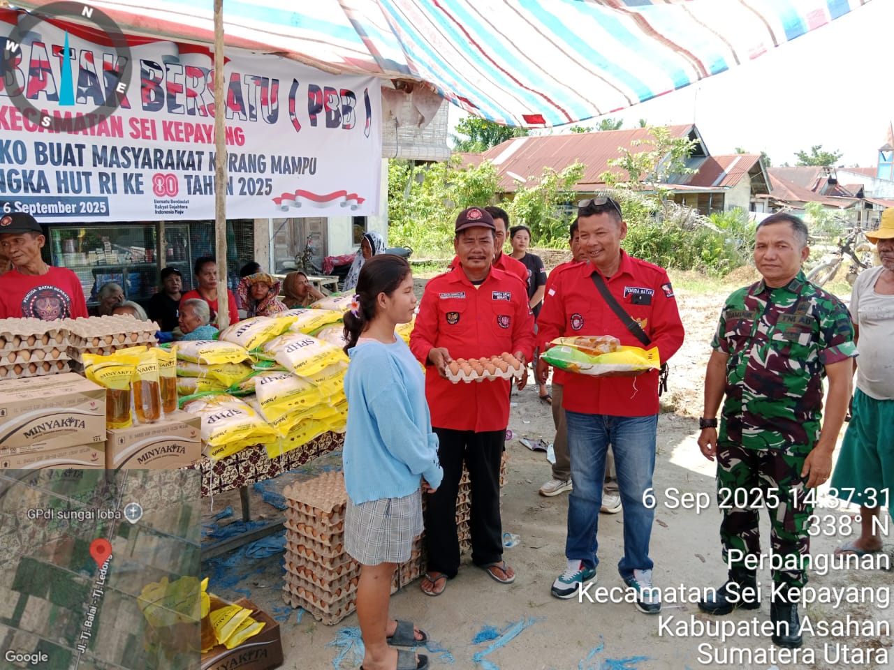 Cakrawalanational.news-Asahan, DPC PBB (Pemuda Batak Bersatu) Kabupaten Asahan bersama PAC Pemuda Batak Bersatu Kecamatan Sei Kepayang melaksanakan kegiatan berbagi sembako gratis kepada masyarakat kurang mampu di Desa Perbangunan, Kecamatan Sei Kepayang, Kabupaten Asahan, pada, Sabtu (6/9/2025).