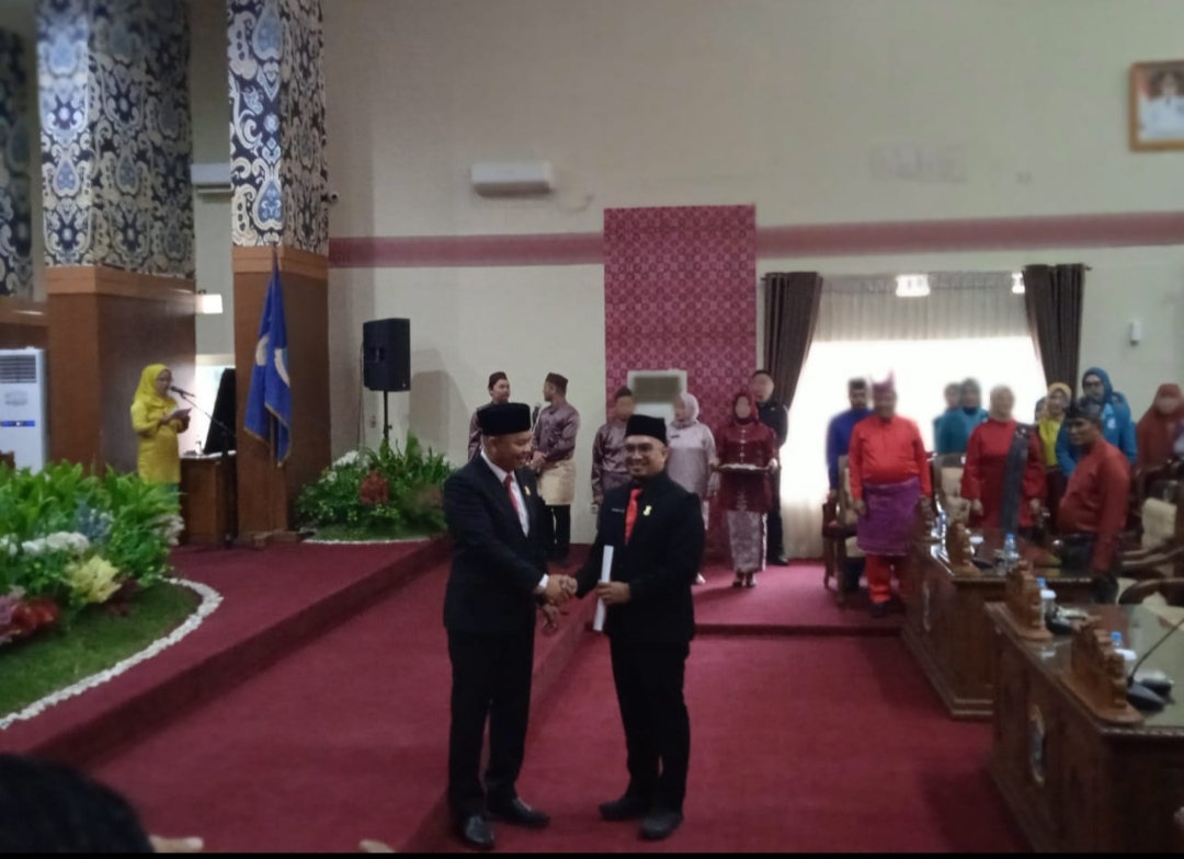 Acara tersebut dihadiri oleh berbagai pejabat, termasuk Gubernur Bangka Belitung, Pj Walikota, Ketua DPRD, dan Forkopimda, serta Walikota dan Wakil Walikota terpilih, Prof Saparudin dan Desy Ayutrisna. (Zul/CNN)