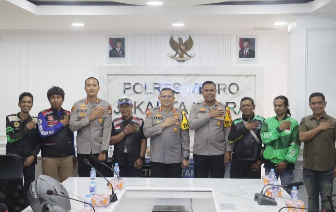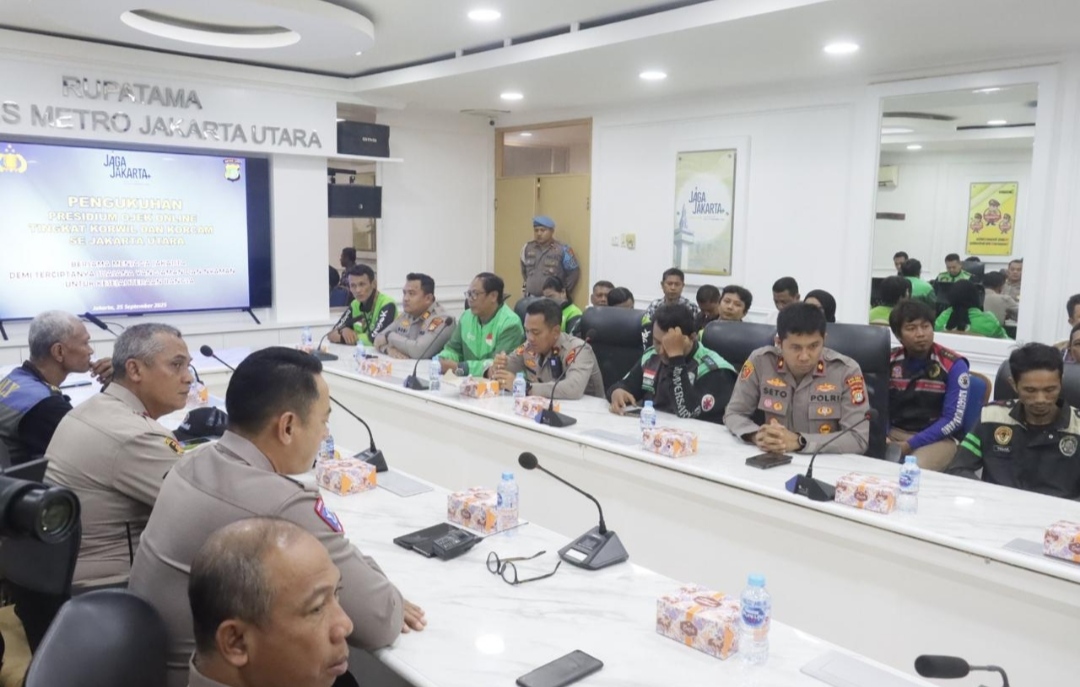 Cakrawalanational.news-Jakarta, Kapolres Metro Jakarta Utara (Jakut), Kombes Pol Erick Frendriz, S.I.K., M.Si., memimpin pengukuhan Presidium Komunitas Ojek Online se-Jakarta Utara dalam rangka mendukung program Jaga Lingkungan dan Jaga Warga. Kegiatan ini berlangsung di Ruang Rapat Rupatama Lantai 3 Mapolres Metro Jakarta Utara, pada Kamis (25/9/2025) pukul 10.00 WIB.