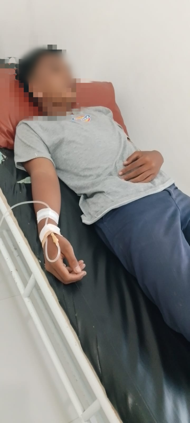 “Iya, saat ini anak lagi di klinik ini, anak saya menjadi korban bullying disertai kekerasan oleh kakak kelasnya, namun sampai saat ini belum ada itikad baik dari pihak keluarga terduga pelaku dan pihak sekolah”, beber AS.