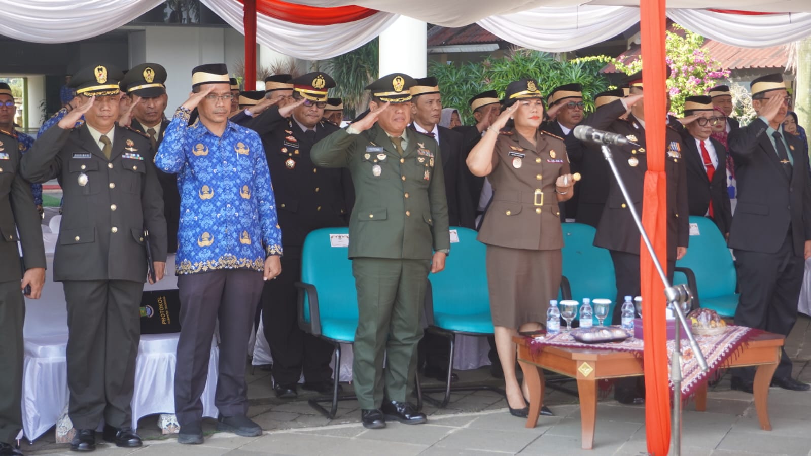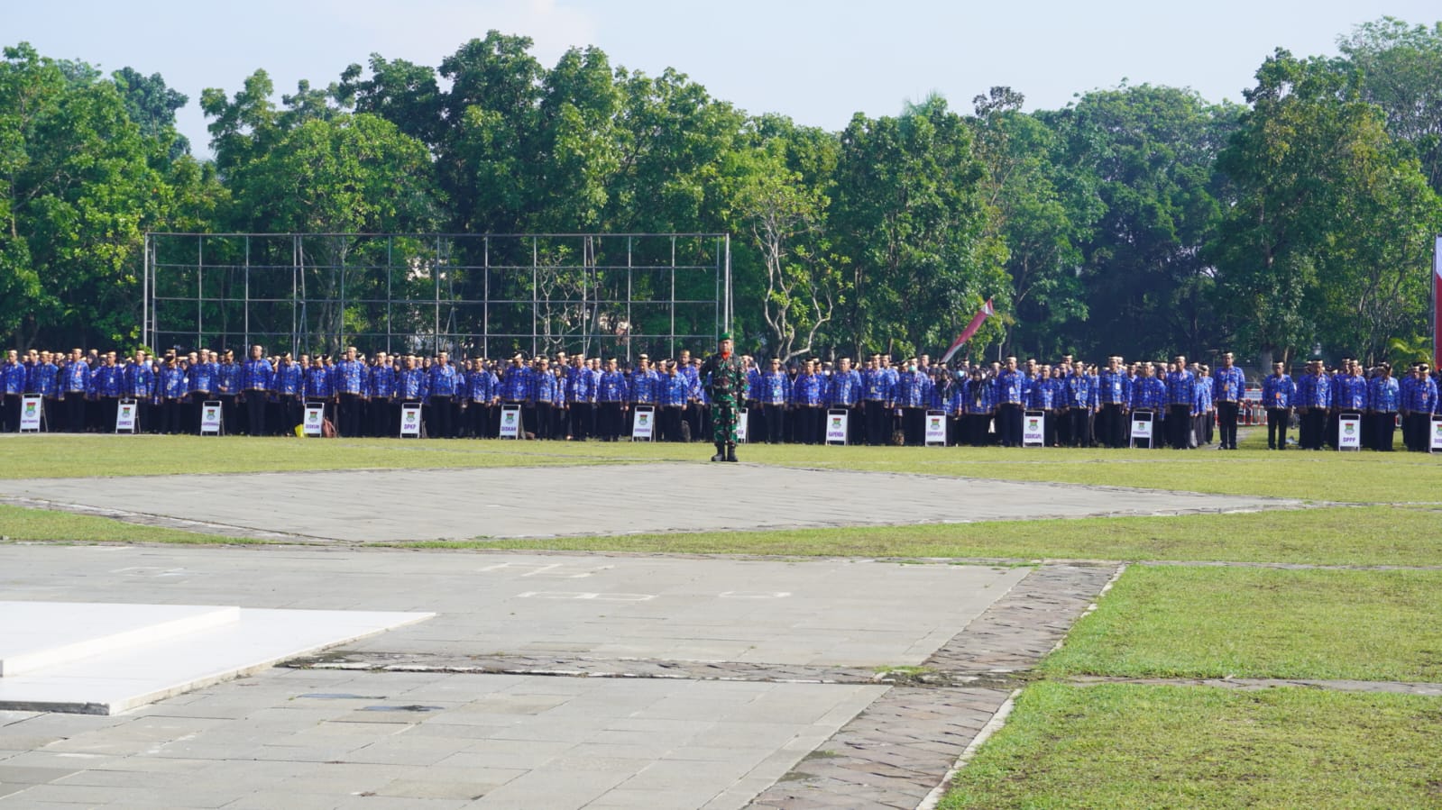 Ribuan peserta dari TNI, Polri, ASN, hingga Satpol PP mengikuti jalannya upacara dengan penuh penghormatan. Kehadiran berbagai unsur ini mencerminkan komitmen menjaga stabilitas dan persatuan bangsa.