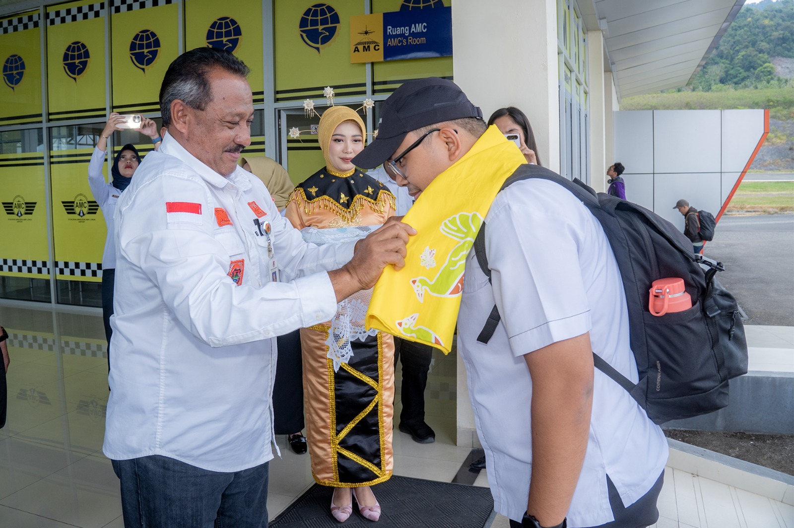 Cakrawalanational.news-Luwuk, Staf Ahli Bupati Plt. Asisten Perekonomian dan Pemerintahan Sekretariat Daerah Kabupaten Banggai Provinsi Sulawesi Tengah, Mujiono, S.H., M.H., didampingi Kabag Tapem Setda Kabupaten Banggai Hariadi Bola, S.H, menjemput kedatangan Anggota Tim Fasilitasi Penataan Kecamatan Pusat dari Ditjen Bina Administrasi Kewilayahan Kementerian Dalam Negeri di Bandara Syukuran Aminuddin Amir Luwuk, Rabu (08/10).