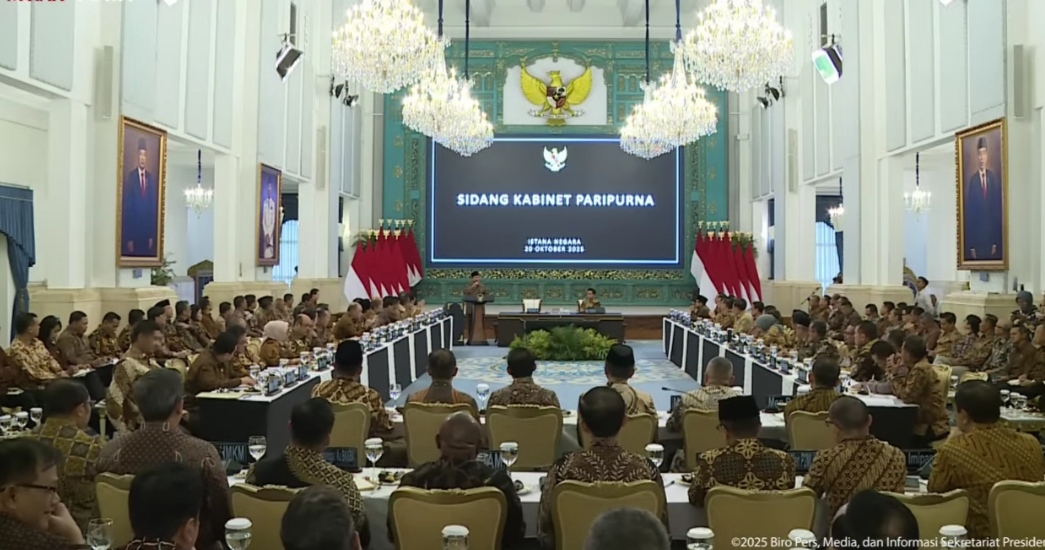 Cakrawalanational.news-Jakarta, Presiden Prabowo Subianto memimpin Sidang Kabinet Paripurna di Istana Negara, Senin (20/10/2025), untuk mengevaluasi kinerja satu tahun Kabinet Merah Putih. Dalam kesempatan tersebut, Presiden Prabowo menyoroti sejumlah capaian penting, termasuk pertumbuhan ekonomi 5 persen, inflasi 2 persen, dan program strategis seperti Makan Bergizi Gratis (MBG) dan Cek Kesehatan Gratis (CKG).