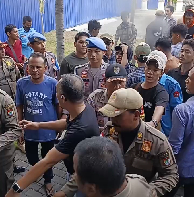 Cakrawalanational.news-Luwuk, Aksi massa yang tergabung dalam Aliansi Mahasiswa dan Masyarakat (Amara) menggelar aksi demo di Gedung DPRD Banggai Provinsi Sulawesi Tengah. Selasa, (21/10/2025). Aksi demo tersebut sempat menimbulkan keributan, dimana terlihat massa saling dorong dengan Polisi Pamong Praja (Pol-PP). Melihat situasi yang kian memanas, anggota Polres Banggai yang sejak pagi sudah berjaga-jaga di area Gedung DPRD Banggai, sebelum kedatangan massa aksi, lansung gerak cepat mengambil sikap pengamanan. Kasat Intelkam Polres Banggai AKP Usman, SH memakai kaos warna hitam terlihat ditengah-tengah massa aksi dengan sigap segera melerai dengan melakukan tindak persuasif kepada kedua pihak yang bertikai.