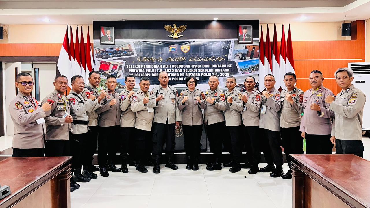 Cakrawalanational.news-Palu, Polda Sulawesi Tengah menggelar Sidang Akhir Kelulusan Seleksi Pendidikan Alih Golongan (PAG) Tahun Anggaran 2025 dan Seleksi Sekolah Bintara Polisi (SBP) Tahun Anggaran 2026. Kegiatan tersebut berlangsung di Aula Rupatama Polda Sulteng, Jumat (24/10/2025).