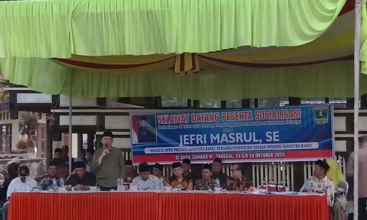 Cakrawalanational.news-Padang, Anggota DPRD Provinsi Sumatera Barat (Sumbar) dari Fraksi Demokrat, Jefri Masrul, SE, menggelar Sosialisasi Peraturan Daerah (Perda) Nomor 17 Tahun 2018 tentang Penyelenggaraan Pembangunan Ketahanan Keluarga di Balai Adat Nagari Tigo Jangko, Kecamatan Lintau Buo, Sabtu (25/10/2025).