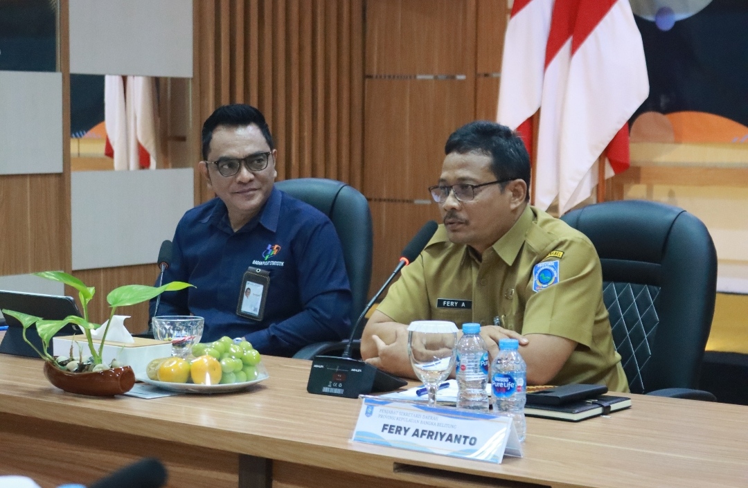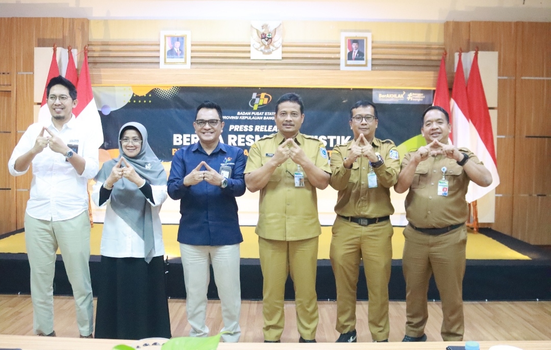 Penjabat Sekretaris Daerah (Pj Sekda) Provinsi Kepulauan Bangka Belitung (Babel), Fery Afrianto menghadiri Press Release Berita Resmi Statistik Provinsi Babel, Senin (3/11/2025) di Ruang Aula BPS.
