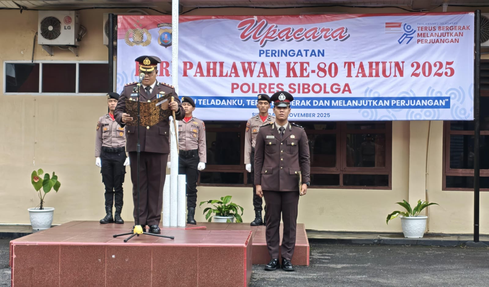 Cakrawalanational.news-Sibolga, Polres Sibolga menggelar upacara peringatan Hari Pahlawan Ke-80 Tahun 2025 dengan penuh khidmat di Lapangan Apel Polres Sibolga, Senin (10/11/2025). Upacara ini mengusung tema “Pahlawanku Teladanku Terus Bergerak dan Melanjutkan Perjuangan” sebagai refleksi semangat untuk meneladani nilai-nilai perjuangan para pahlawan bangsa.
