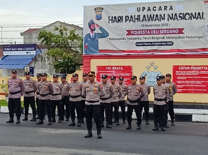 Cakrawalanational.news-Deli Serdang, Polresta Deli Serdang melaksanakan upacara peringatan Hari Pahlawan Nasional yang jatuh pada tanggal 10 November 2025 di Lapangan Apel Polresta Deli Serdang. Upacara berlangsung dengan khidmat, Senin (10/11/2025).