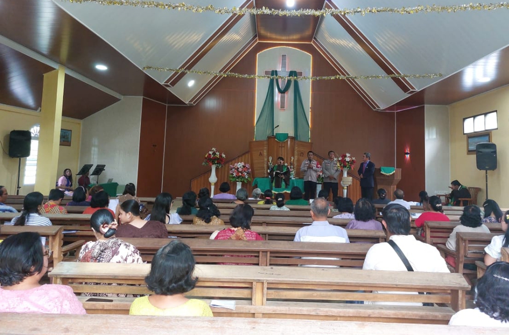 Kegiatan Minggu Kasih ini berlangsung dalam suasana aman, tertib, dan penuh keakraban antara aparat kepolisian dan jemaat.”ucap Kasi Humas Polres Sibolga AKP Suyatno melalui fia chat WhatsApp pribadi cakrawalanational.news.