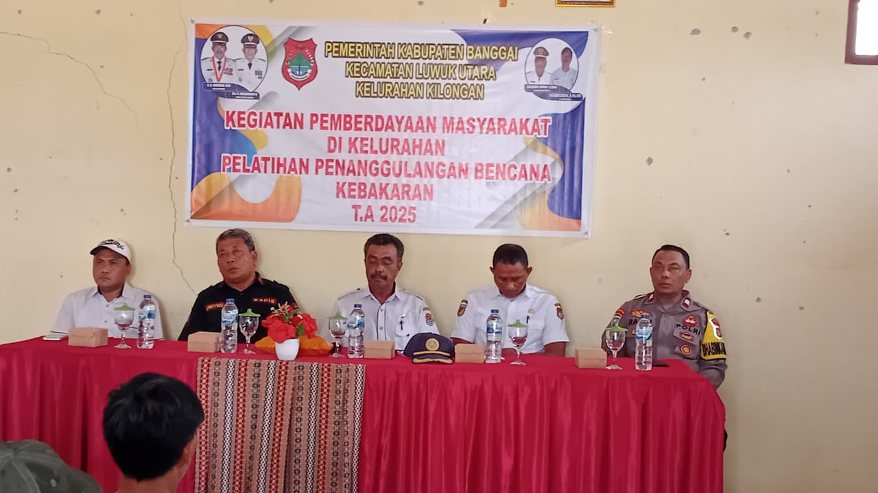 Cakrawalanational.news-Luwuk, Kepala Dinas Pemadam Kebakaran (Damkar) Kabupaten Banggai memberikan apresiasi kepada Lurah Kilongan atas penyelenggaraan kegiatan pemberdayaan masyarakat dan pelatihan penanggulangan kebakaran serta penyelamatan yang digelar di Aula Balai Pertemuan Umum (BPU) Kelurahan Kilongan, Kecamatan Luwuk Utara, Kabupaten Banggai Provinsi Sulawesi Tengah, Rabu pagi (26/11/12025).