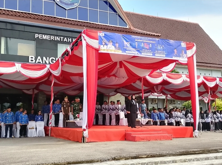 Cakrawalanational.news-Toboali Bangka Selatan, 1 Desember 2025 – Wakil Bupati Bangka Selatan, Hj. Debby Vita Dewi, memimpin rangkaian upacara memperingati Hari Ulang Tahun (HUT) ke-80 PGRI, HUT ke-54 KORPRI, dan Hari Guru Nasional ke-31 Tahun 2025 yang berlangsung di halaman Kantor Bupati Bangka Selatan. Kegiatan yang dimulai pukul 07.30 WIB ini dihadiri oleh jajaran Forkopimda, pejabat OPD, anggota PGRI, ASN, serta ratusan peserta upacara dari berbagai kalangan.
