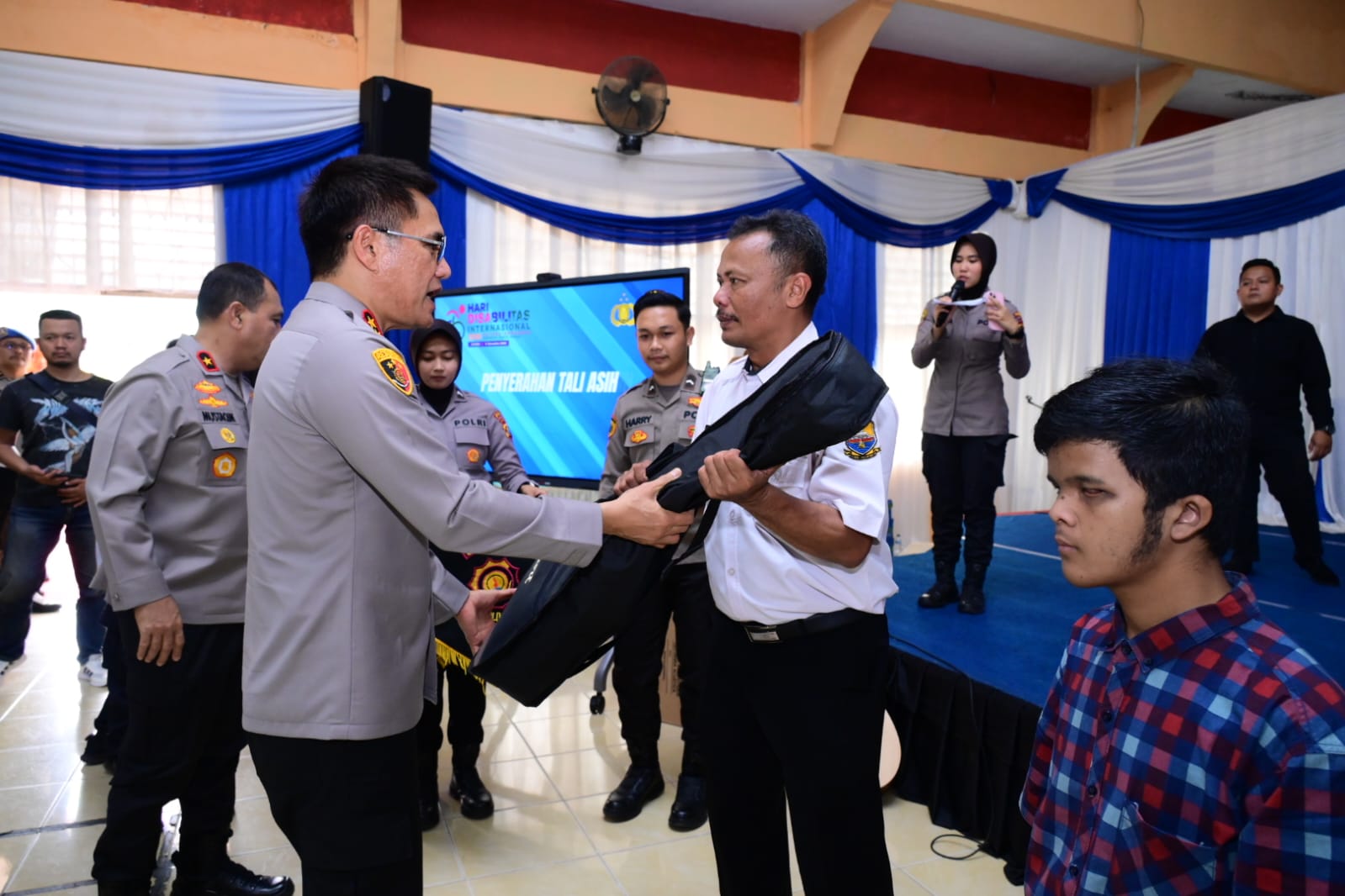 Usai sambutan, kegiatan dilanjutkan dengan penyerahan tali asih serta penandatanganan berita acara hibah alat musik sebagai bentuk dukungan Polda Jambi terhadap pengembangan kreativitas siswa.