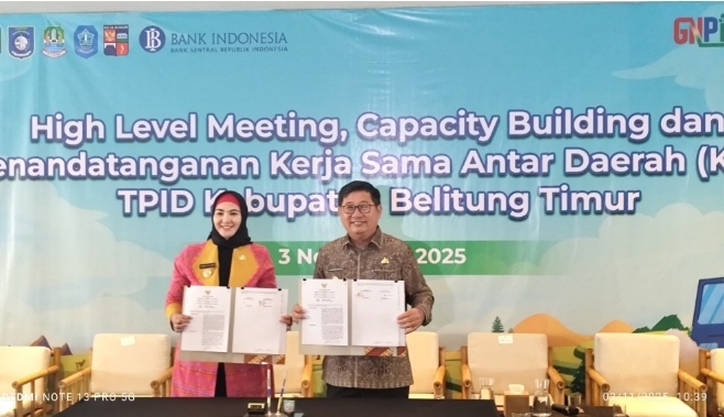 Wabup Debby menambahkan bahwa kegiatan High Level Meeting ini menjadi momentum penting dalam memperkuat kerja sama antar daerah. Penandatanganan kesepakatan antara Kabupaten Belitung Timur dengan Bangka Selatan, serta antara Bangka Selatan dan Bangka Barat, merupakan langkah nyata untuk mendukung pengendalian inflasi dan pertumbuhan ekonomi regional.