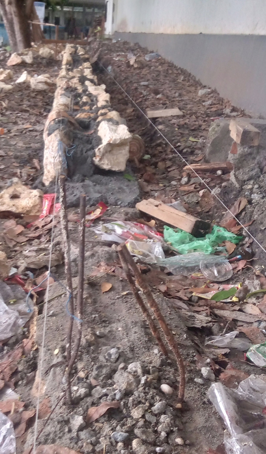 Salah seorang pekerja yang bekerja sejak awal berdirinya Pagar saat dikonfirmasi mengatakan, “iya memang tidak ada galian pondasi, pekerjaan pagar ini berdiri diatas pondasi lama,” ucapnya.