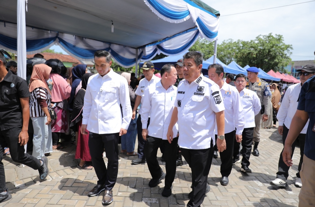 Gubernur Hidayat Arsani bersama Ketua Umum Kadin Indonesia Anindya Bakrie dan Thomas Jusman dalam kesempatan itu juga menyapa dan berbincang dengan warga yang menyambut antusias Gerakan Pangan Murah Kadin Indonesia.