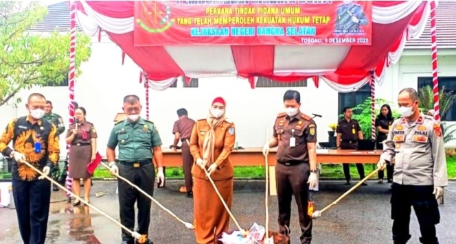 Cakrawalanational.news-Bangka Selatan, 10 Desember 2025) – Kejaksaan Negeri (Kejari) Bangka Selatan melaksanakan pemusnahan barang bukti perkara tindak pidana umum yang telah berkekuatan hukum tetap pada Selasa (9/12/2025). Kegiatan yang digelar di halaman Kantor Kejari turut dihadiri Wakil Bupati Hj. Debby Vita Dewi, S.E., M.M., Forkopimda, dan perwakilan instansi terkait.