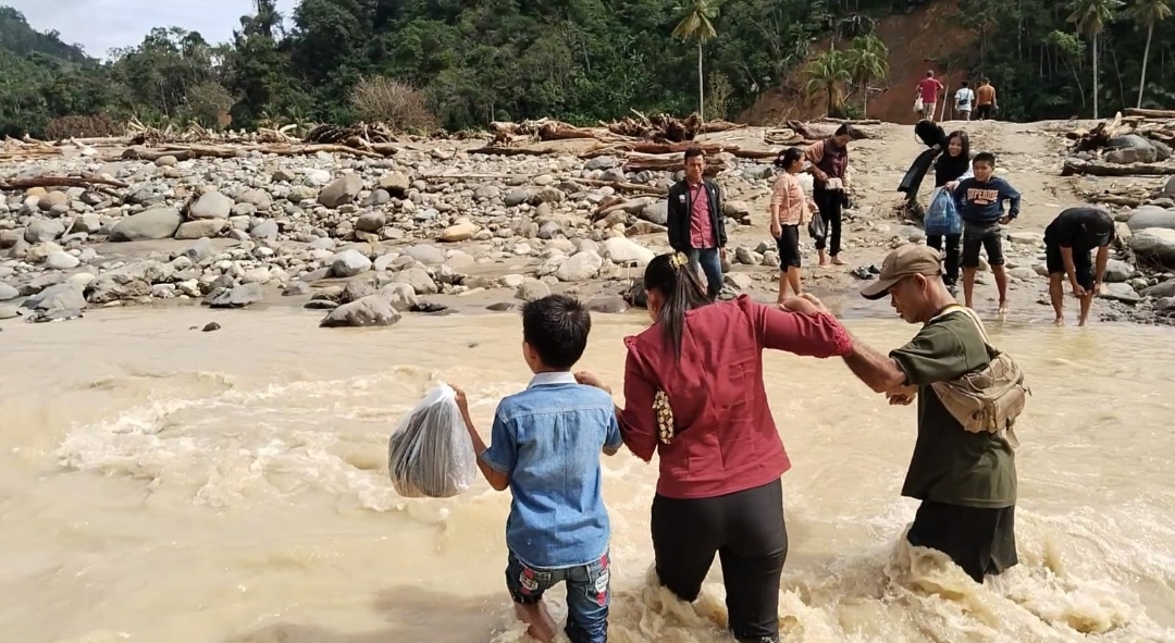 “Dulu bisa dilalui dengan roda dua, kini harus jalan kaki dan menyebrang beberapa titik sungai yang telah putus rambin dan jembatan. Akses jalan desa ini sudah tidak nampak lagi. Desa ini sangat membutuhkan perhatian penuh pemerintah kabupaten Tapanuli Tengah,” ujar Yasmend.