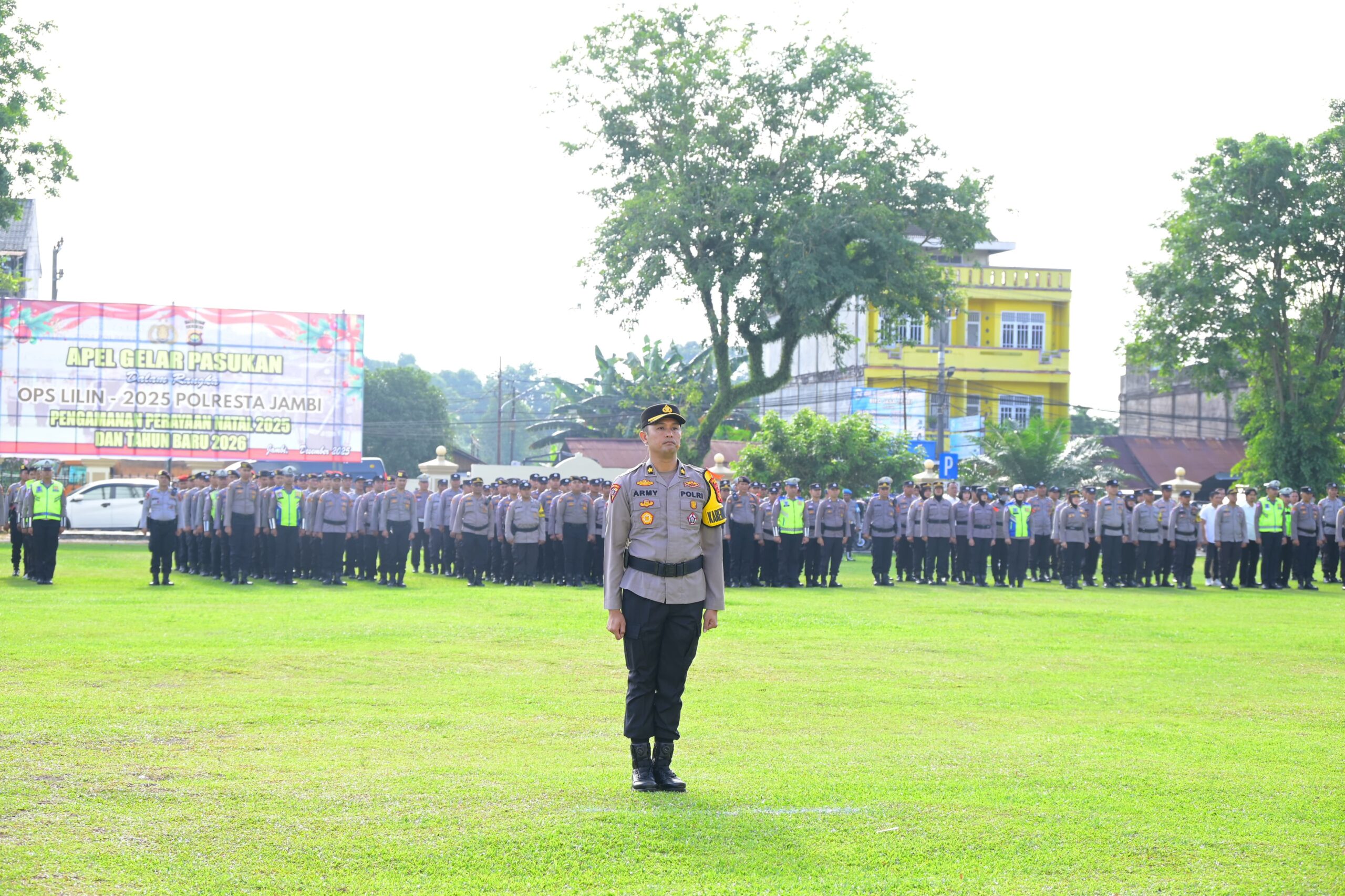 Cakrawalanational.news-Jambi, Sebagai bentuk kesiapan personel dalam memberikan rasa aman dan nyaman bagi umat Kristiani yang akan melaksanakan lbadah Natal, Polda Jambi melaksanakan Apel Persiapan Pengamanan Malam Natal Tahun 2025 di Lapangan Hijau Mapolresta Jambi pada Rabu, (24/12/2025)
