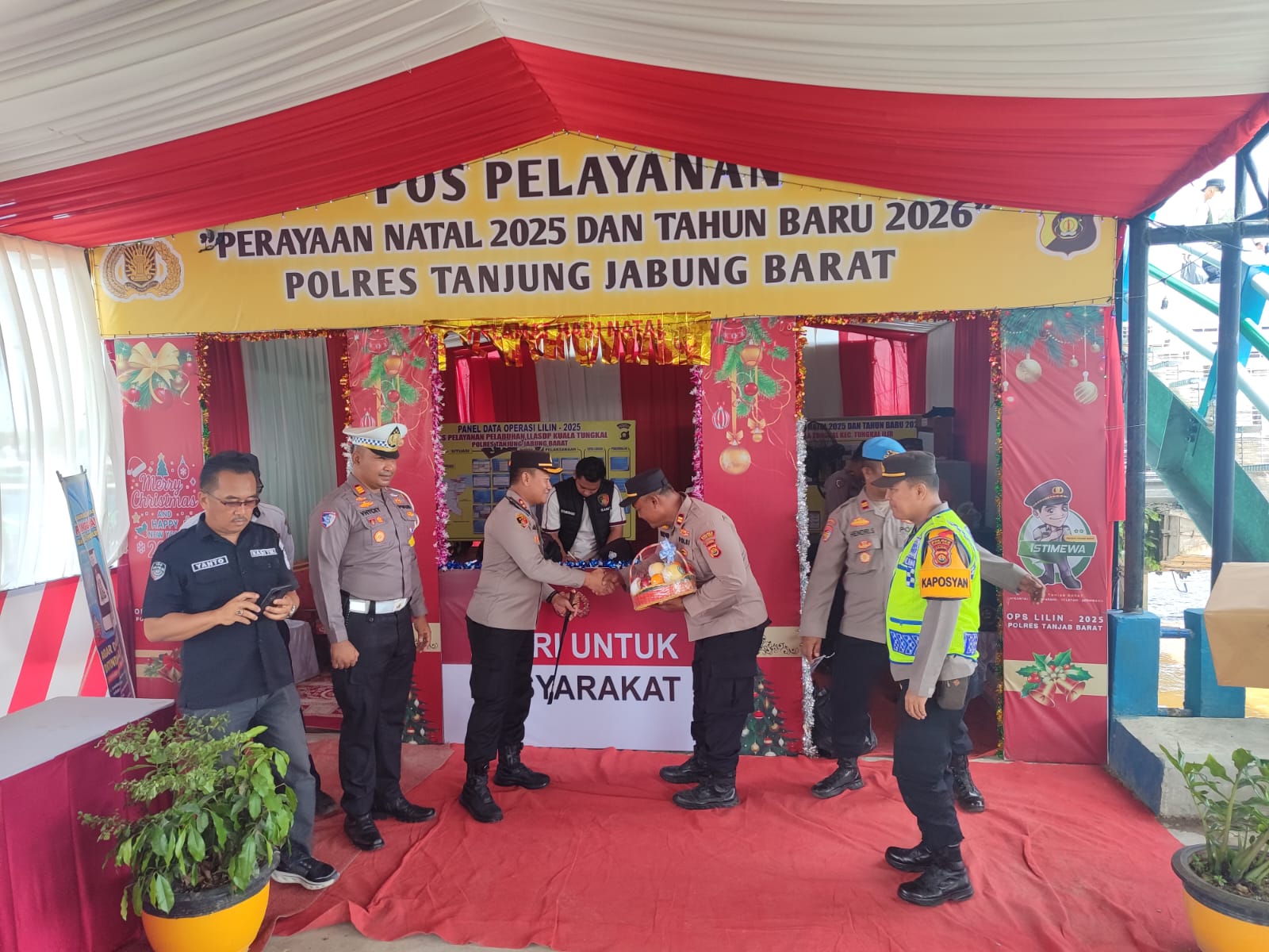 Cakrawalanational.news-Kuala Tungkal, Guna menjamin keamanan dan kenyamanan masyarakat selama perayaan Natal dan menyambut Tahun Baru 2026, Kapolres Tanjung Jabung Barat (Tanjab Barat) Provinsi Jambi, AKBP Agung Basuki, S.I.K., M.M., melakukan peninjauan langsung ke sejumlah Pos Pengamanan (Pos Pam) dan Pos Pelayanan (Pos Yan) pada Jum’at (26/12/2025).