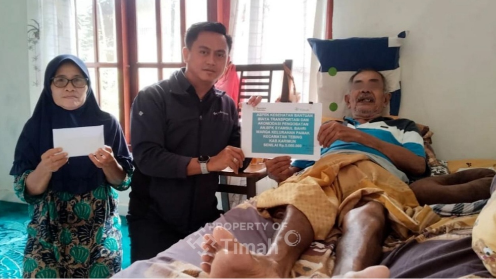 Cakrawalanational.news-Kundur, PT TIMAH Tbk kembali menunjukkan kepedulian sosialnya kepada masyarakat melalui penyaluran bantuan biaya pengobatan kepada Syamsul Bahri (68) warga Desa Pamak, Kecamatan Tebing, Kabupaten Karimun Kepulauan Riau (Kepri).
