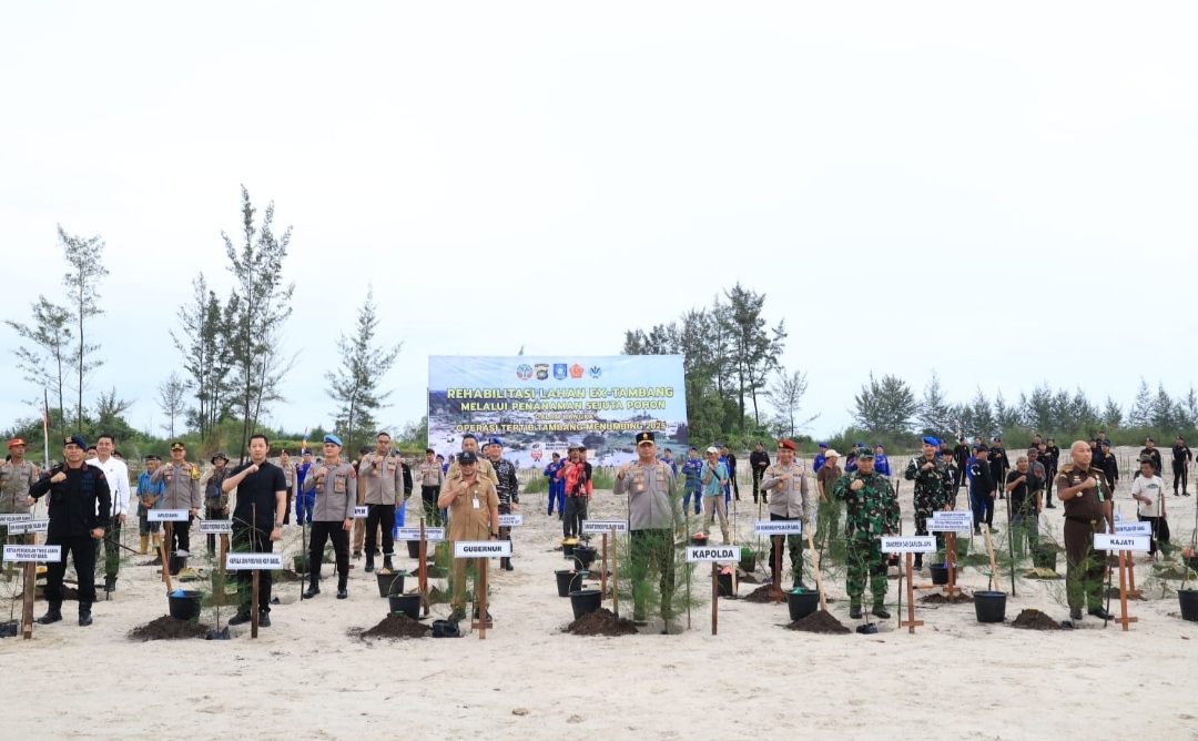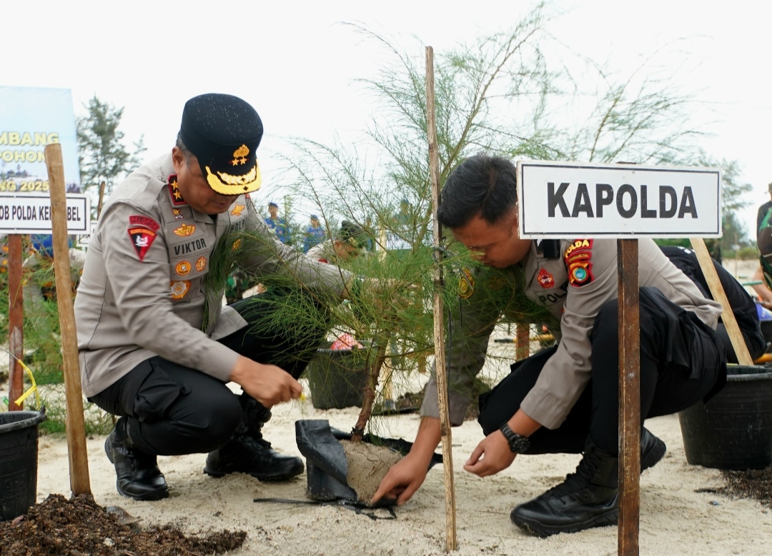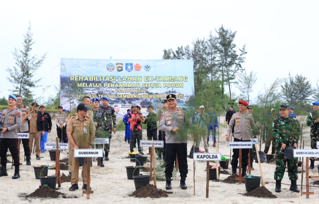 Irjen Pol Viktor mengatakan penanaman pohon ini dilaksanakan untuk rehabilitasi lahan eks tambang dalam rangka Operasi Tertib Tambang Menumbing 2025.