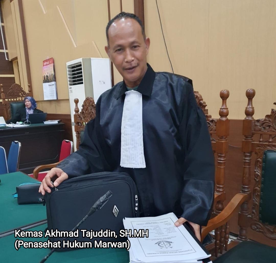 Cakrawalanational.news-Pangkalpinang, Menanggapi berita online pjs.com yang berjudul ‘Putusan MA tak digubris, Marwan Eks Kadishut Terancam masuk DPO’, sebagai Penasehat Hukum Marwan, Kemas Akhmad Tajuddin, SH,MH menyampaikan klarifikasi bahwa tidak benar kalau Marwan tidak menggubris putusan MA terkait surat panggilan untuk menjalani eksekusi putusan Pengadilan.