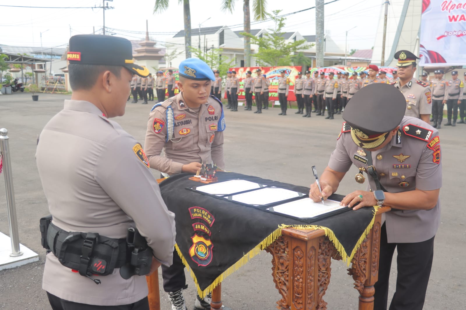 Dipimpin oleh Kapolres Tanjab Barat AKBP Agung Basuki, S.I.K., M.M. Dihadiri oleh Ketua Bhayangkari Cabang Tanjab Barat Ny. Mutya Agung, Pejabat Utama (PJU), Kapolsek jajaran, Personel Polri, serta ASN Polres Tanjab Barat.
