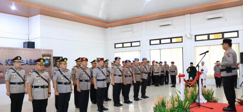 Upacara sertijab berlangsung di Gedung Tribrata Polda Babel, Senin (12/1/26) yang dihadiri Wakapolda Brigjen Pol Tony Harsono, Irwasda, Pejabat Utama hingga para Kapolres/ta jajaran.