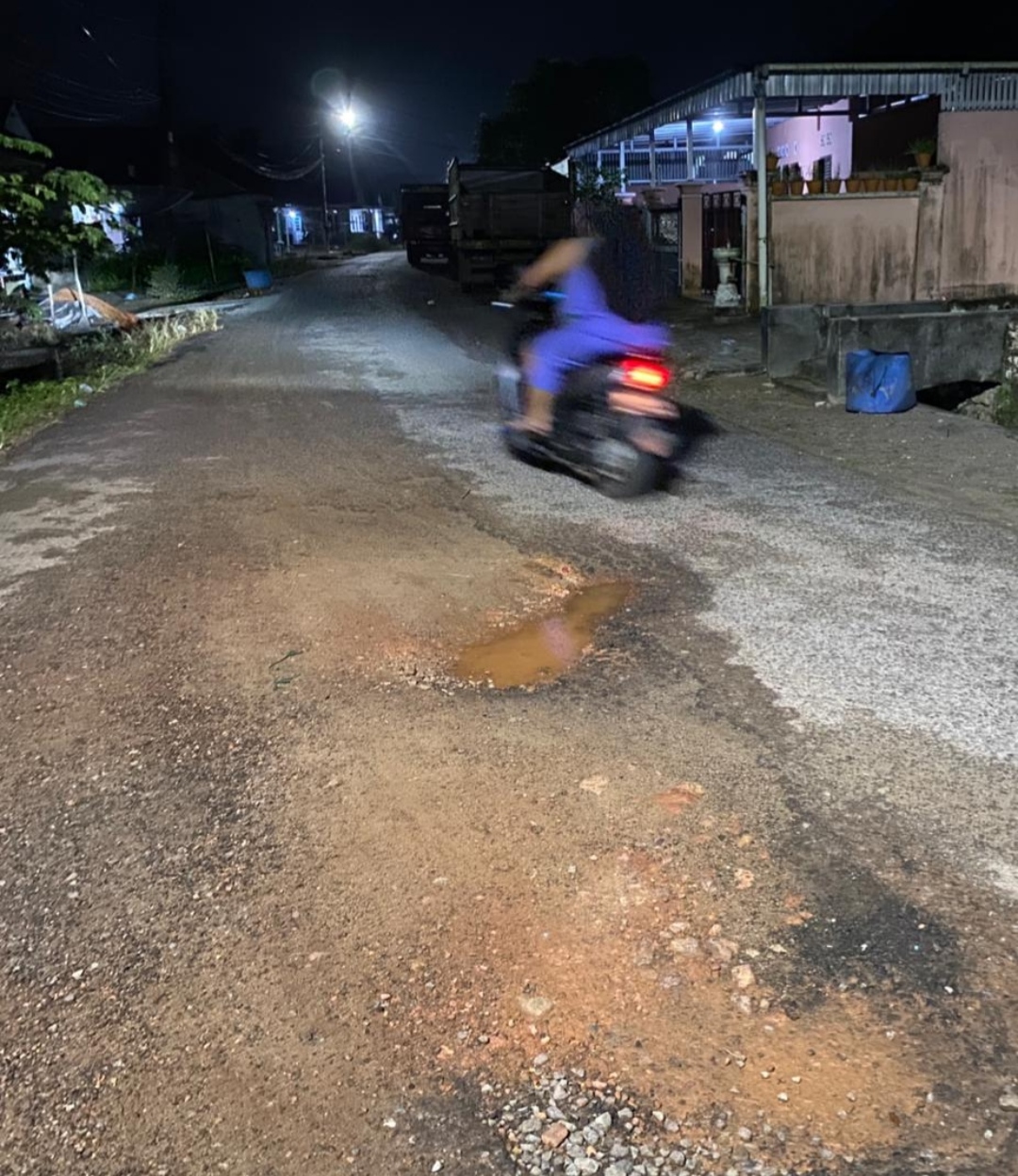 “Kalau malam hari sangat bahaya karena penerangan di beberapa titik minim. Sering ada motor yang hampir terjatuh karena mengerem mendadak saat melihat lubang di depannya,” ujar Tamzil (57) warga sekitar yang mengungkapkan kekhawatirannya atas kondisi jalan yang memburuk, Jum’at (30/1/2026).