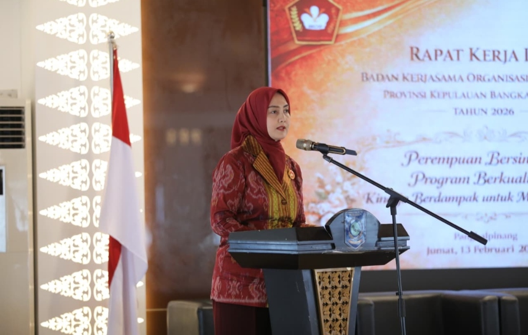 Itulah kalimat penting yang keluar dari Ketua Badan Kerja Sama Organisasi Wanita (BKOW) Noni Hidayat Arsani saat Ia membuka Rapat Kerja Daerah (Rakerda) BKOW Babel di Gedung Mahligai, Rumah Dinas Gubernur Babel, Jumat (13/2/2026).