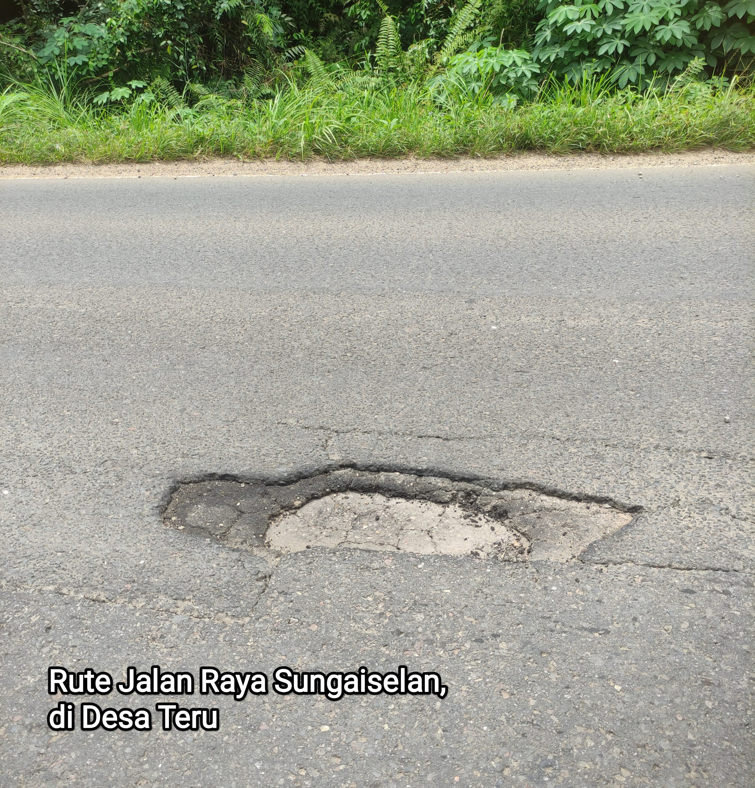 Berdasarkan pantauan wartawan, salah satu lubang yang menganga itu terletak tepat di depan Puskesmas Simpangkatis dan Desa Teru, maka Wartawan juga mencoba menghubungi Kepala Desa Teru, Sholihin, melalui telepon WhatsApp namun nada ‘memanggil’ tak ada respon.