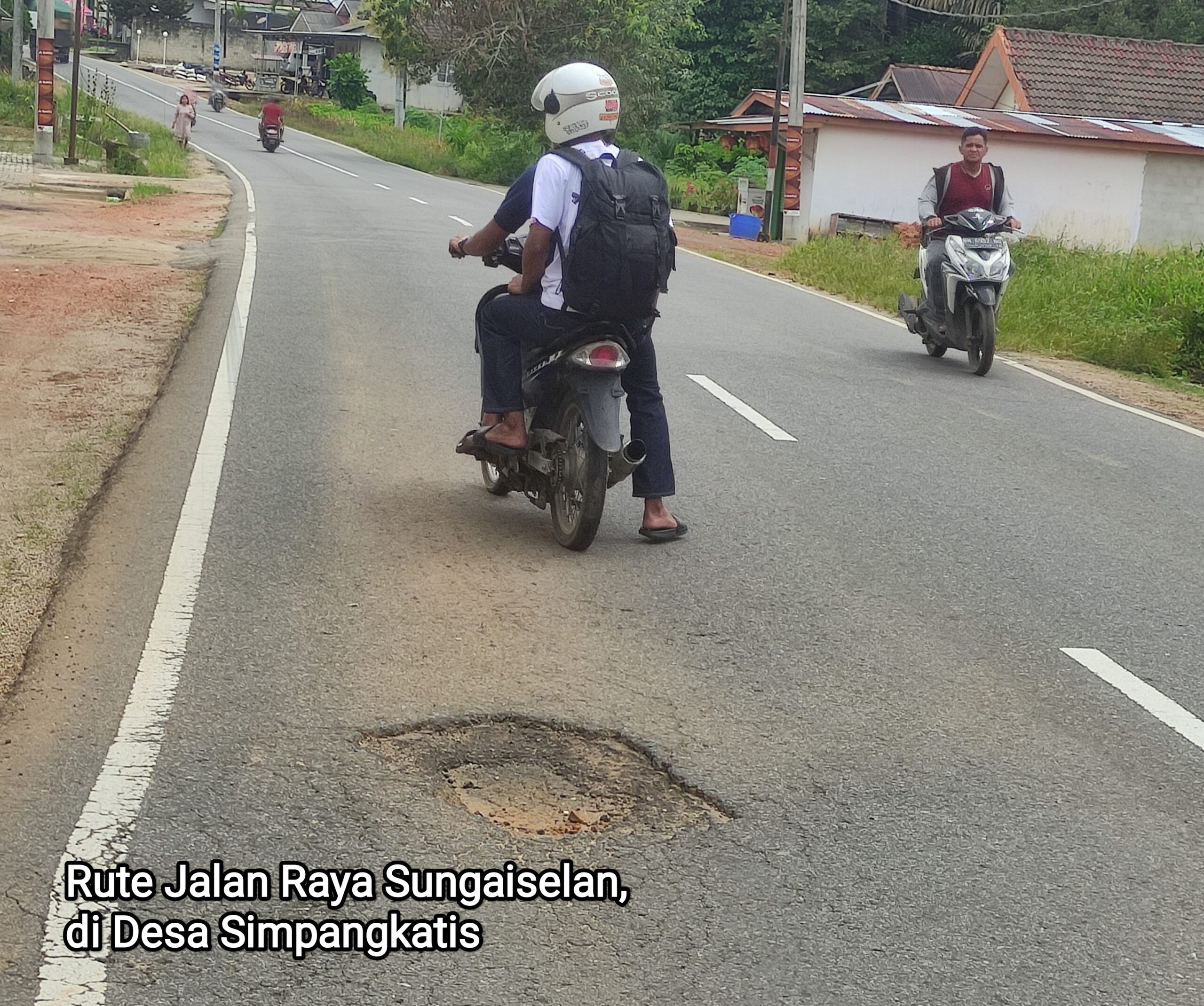 Kades Hendra: Simpangkatis adalah ibukota Kecamatan, tapi jalannya berlubang seperti ini. Apalagi minimnya lampu jalan saat malam hari sehingga gelap tidak ada penerangan