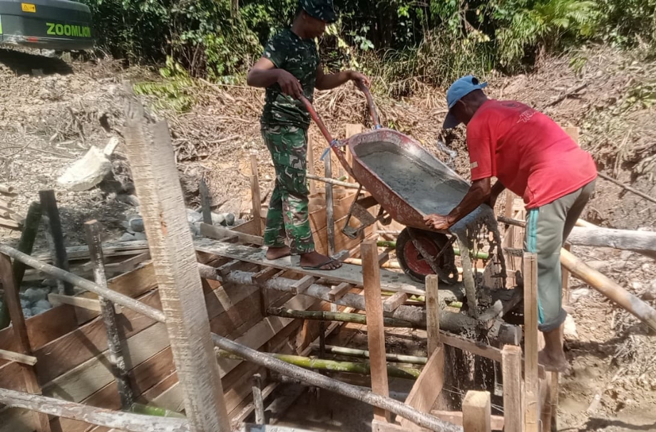 Sementara itu, salah satu anggota Satgas TMMD, Serda Fahrul R, menyebut penggunaan mesin molen membuat pekerjaan lebih efisien, khususnya dalam proses pengecoran box culvert.