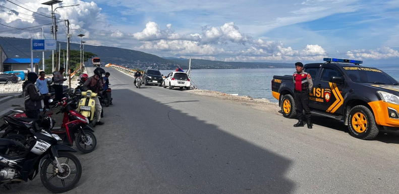 Personel juga melakukan pengecekan terhadap parkiran kendaraan. Hal ini dilakukan guna mengantisipasi kepadatan arus lalu lintas agar tidak terjadi kemacetan saat terjadi antrian keluar masuk pasar.