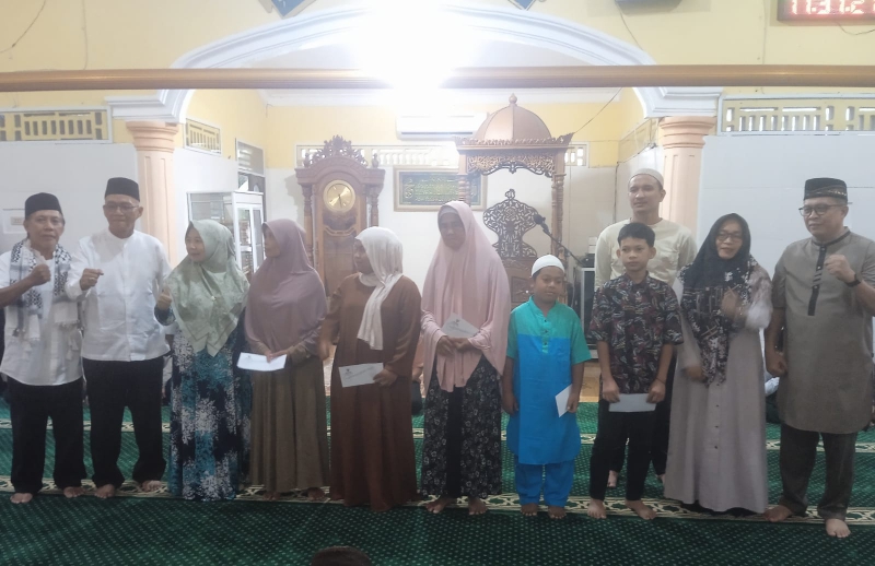 Di sudut masjid, seorang ibu penerima bantuan menggenggam amplop santunan dengan mata berkaca-kaca. Anak-anak duduk bersila, memandangi prosesi penyerahan bantuan dengan rasa ingin tahu. Lampu masjid memantulkan cahaya lembut di wajah-wajah yang menyimpan harapan sederhana: sembako yang cukup untuk sahur dan berbuka, kipas angin yang mengusir gerah, Al-Qur’an baru untuk dibaca selepas tarawih.