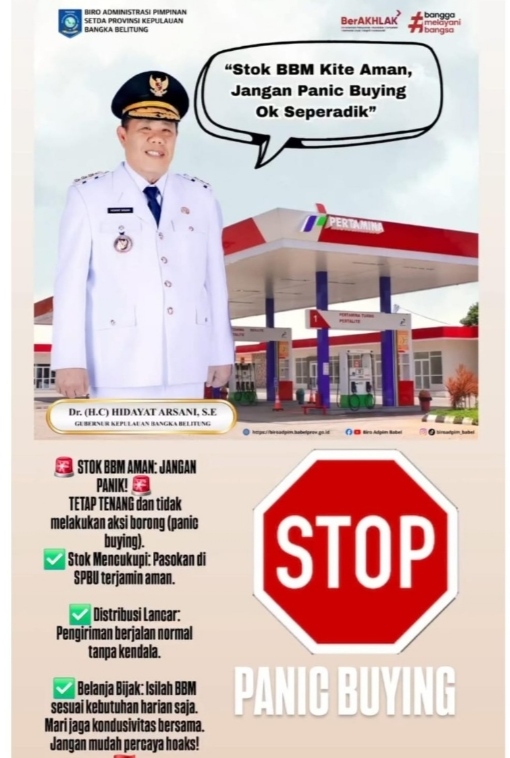 Kendati demikian, Pemprov Babel juga meminta manajemen SPBU untuk turut aktif menyampaikan informasi kepada masyarakat melalui media sosial dan pemasangan imbauan di area SPBU untuk menghindari panic buying.