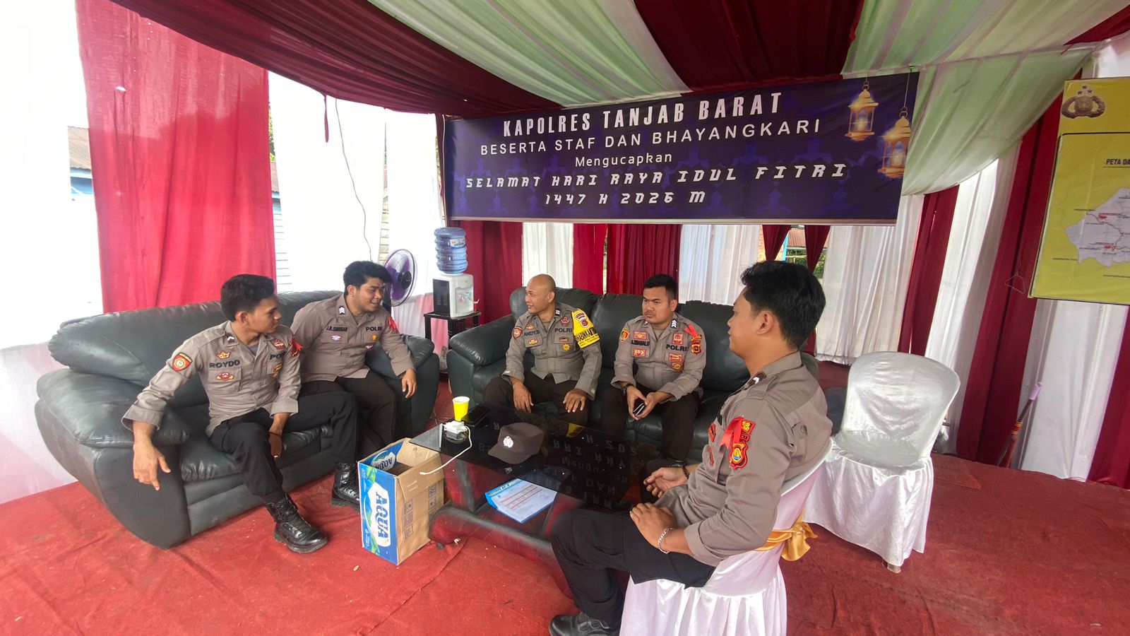 Kapolres Tanjab Barat AKBP M. Kuswicaksono, S.I.K., M.H., melalui Kasi Humas Polres Tanjab Barat, lPDA Ucen S. Kasih menyampaikan bahwa giat siaga pengamanan ini merupakan komitmen Polri dalam memberikan rasa aman dan nyaman kepada masyarakat yang sedang melaksanakan perjalanan mudik maupun wisata.